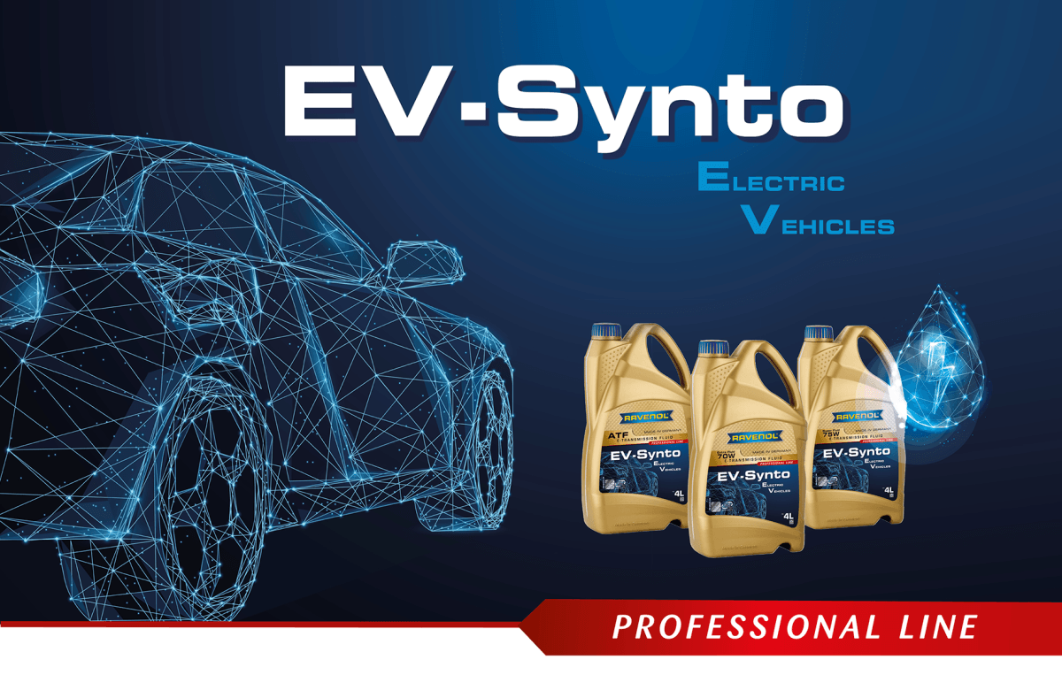 We are therefore pleased to introduce to you today our three new RAVENOL EV-Synto transmission oils. Designed for electric vehicles with dry and wet engine systems, we present the following new high-performance transmission oils