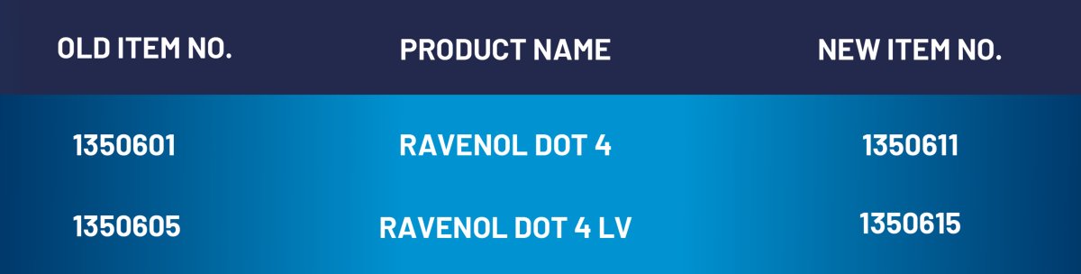 The formulation of the brake fluids remains the same, with the same excellent, proven quality. The products are offered in the same container sizes as before.